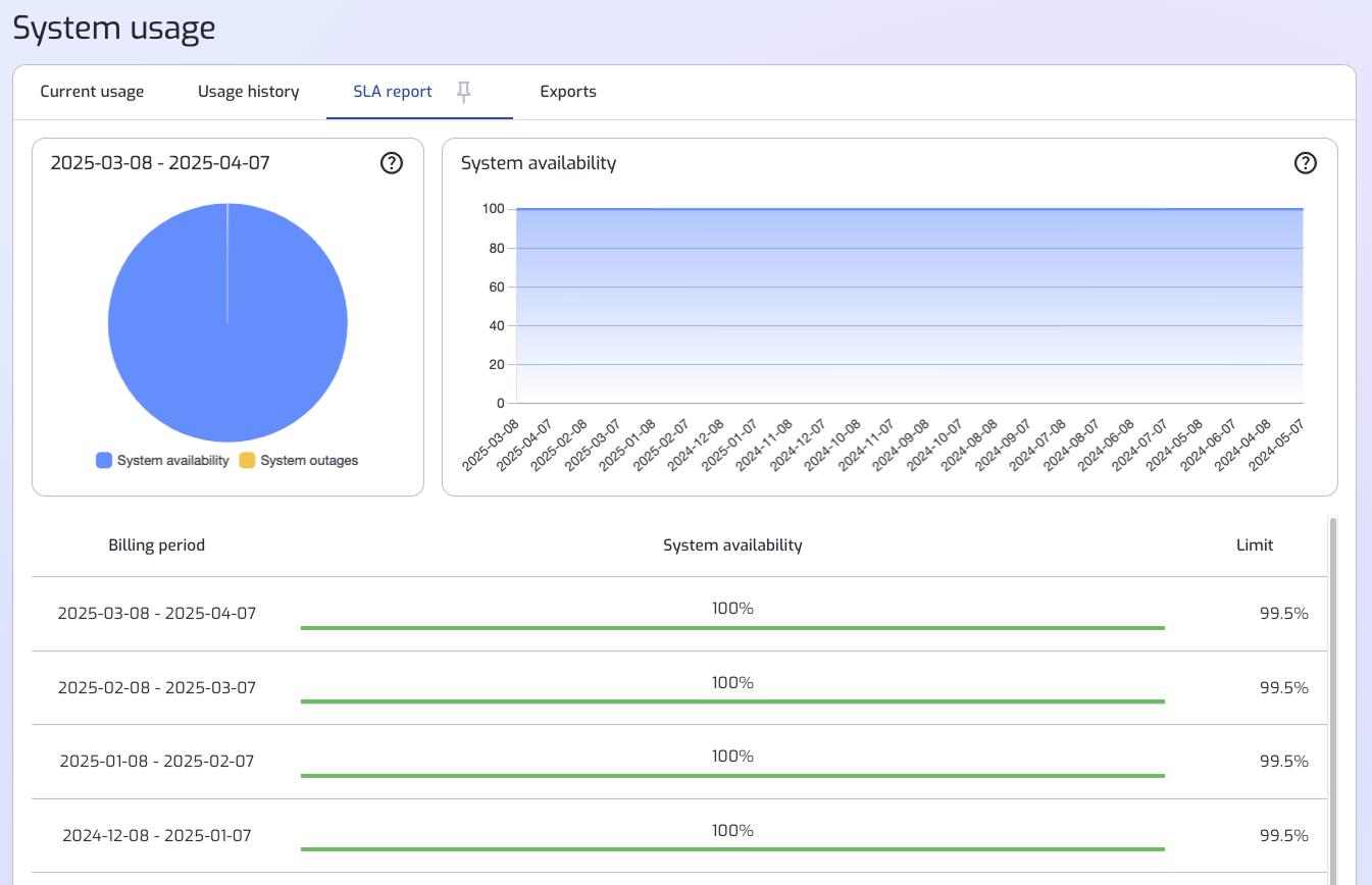 The graphs show the system uptime for each billing period.