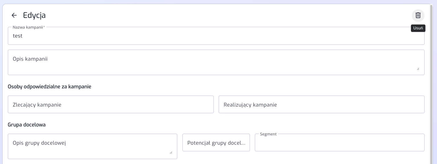 Formularz dodawania nowej kampanii zawiera następujące pola: