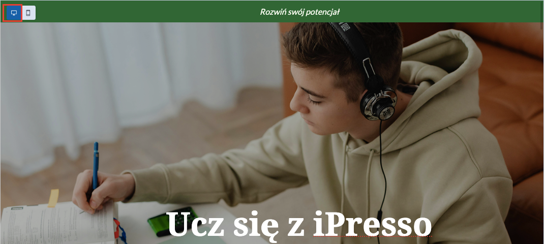 Edytor zapewnia pełną responsywność – możesz przełączać widok między wersją desktopową a mobilną.