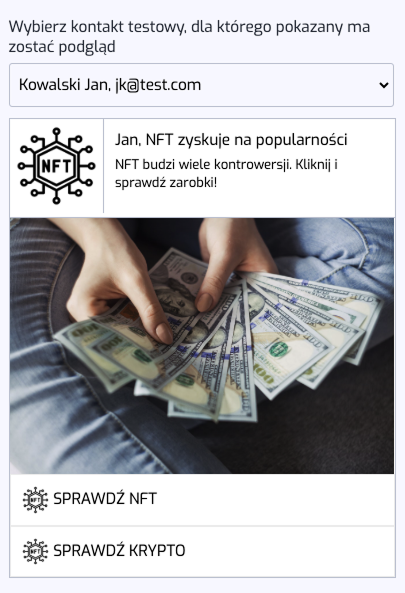 Przykładowy wygląd powiadomienia, możesz podejrzeć w prawej strony ekranu ustawień treści.