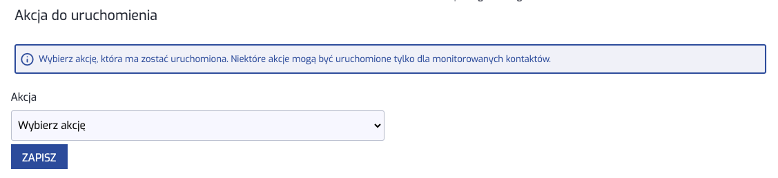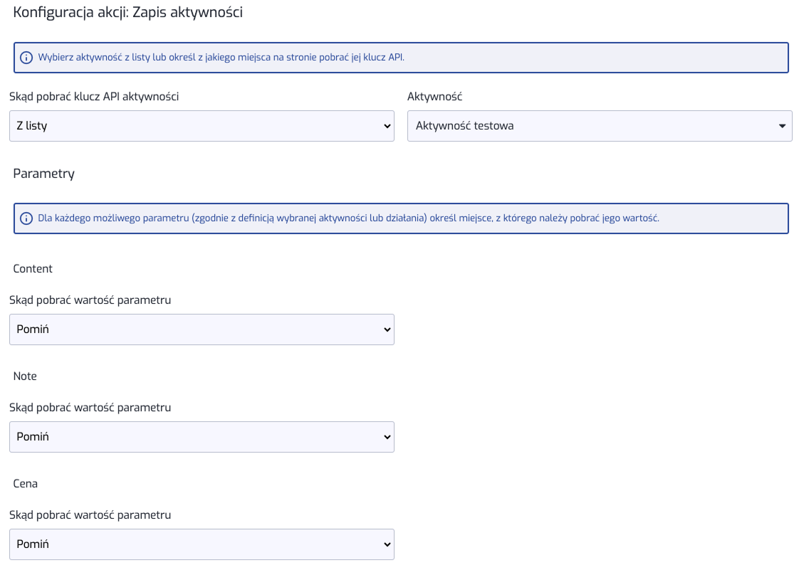 Jeśli wybrana została akcja zapis aktywności lub działania, pojawi się dodatkowe pole do wypełnienia.