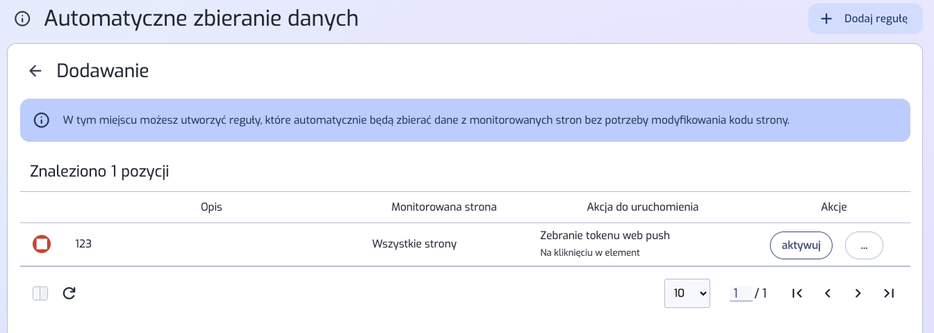 W tym celu przejdź do zakładki Automatyzacja > Automatyczne zbieranie danych, następnie po otwarciu narzędzia, zobaczysz kilka sekcji do wypełnienia.