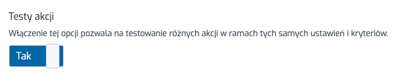 Po aktywacji testów krok “akcje” zmienia się na “test”.