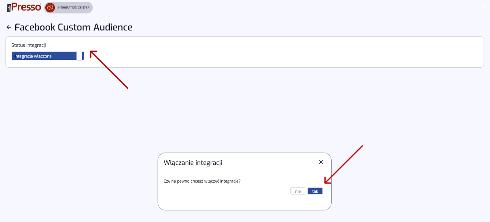 Następnym krokiem jest włączenie integracji: